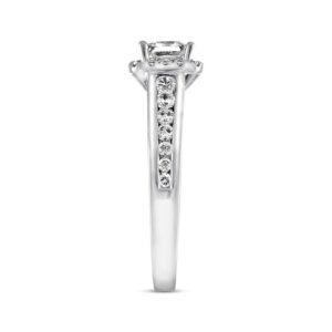 A gorgeous symbol of your love, this sparkling bridal set from features an engagement ring with a romantic heart-shaped diamond haloed by glimmering round diamonds. The band and matching wedding ring are adorned with twists of round diamonds, bringing the total weight of the set to 7/8 carat. The ring is styled in 14K white gold.