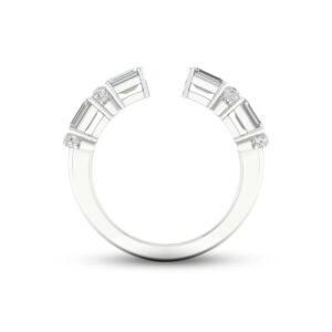 Perfect for stacking or for a chic look when worn alone, this beautiful ring showcases an open deconstructed band design set in iconic 14K white gold. Stunning emerald-cut diamonds alternate with duos of brilliant round diamonds for a total diamond weight of 1 carat.