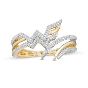 This exciting ring for her features a bypass design decorated with round black and white diamonds. The sterling silver ring has a total diamond weight of 1/2 carat. Black diamonds are treated to permanently create the intense black color.