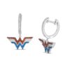 Bursting with action, these gemstone and diamond drop earrings bring eye-catching color to your fearless style. Crafted in sterling silver, each earring showcases the logo lined in regal red garnets, bright blue sapphires and sparkling diamonds. Diamonds adorn the hoop for an extra hint of shimmer. Captivating with 1/20 ct. t.w. of diamonds and a brilliant buffed luster, these earrings secure with hinged backs. This exclusive fine jewelry collection inspires you to wear your strength, confidence and power.