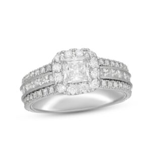 A stunning diamond dances with every move at the center of this gorgeous women’s heart necklace from the collection. Additional round diamonds frame the heart-shaped pendant, giving the necklace a total diamond weight of 1/3 carat. The 10K white gold pendant sways from a 19-inch curb chain and secures with a lobster clasp.